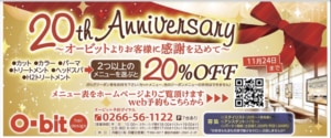 本日11月15日を持ちまして創業20年目を迎えることができました。