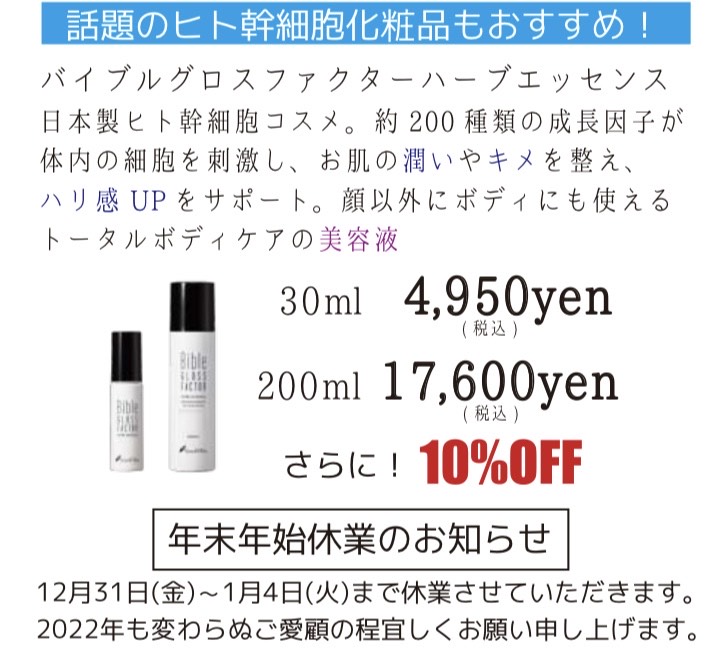 ヒト幹細胞化粧品おすすめ&年末年始のお知らせ