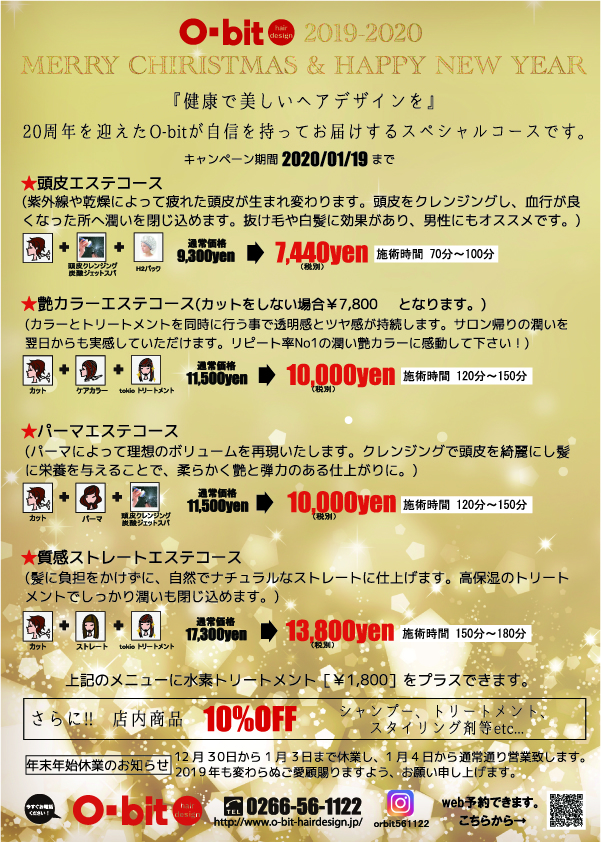 実施期間は2020/01/19までです。ご来店お待ちしております。
