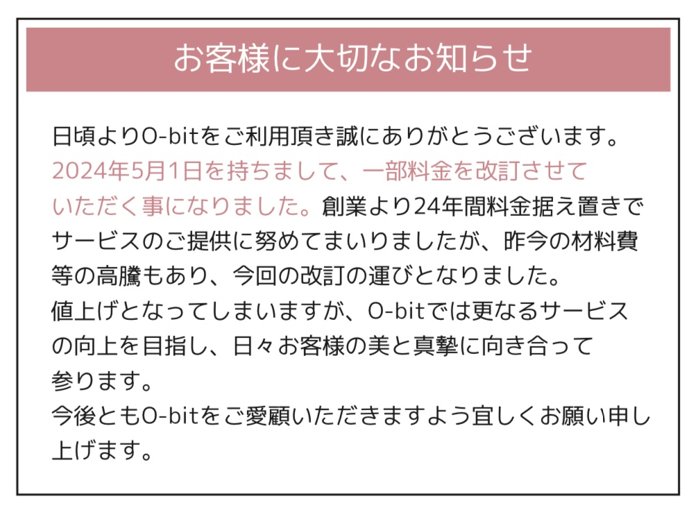 料金改定のお知らせ